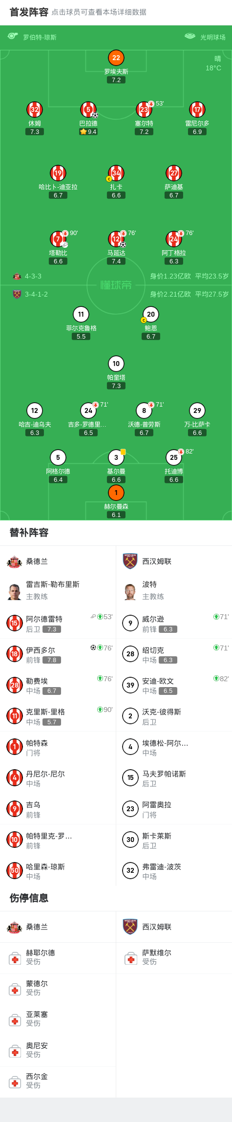 随着比赛进入补时阶段,桑德兰依然保持着强势的节奏。第90+2分钟,塔勒比的助攻找到了伊西多尔,后者在左侧精准射门得手,将比分锁定在3-0。全场比赛结束,桑德兰表现出色,毫无疑问地取得了新赛季的开门红。